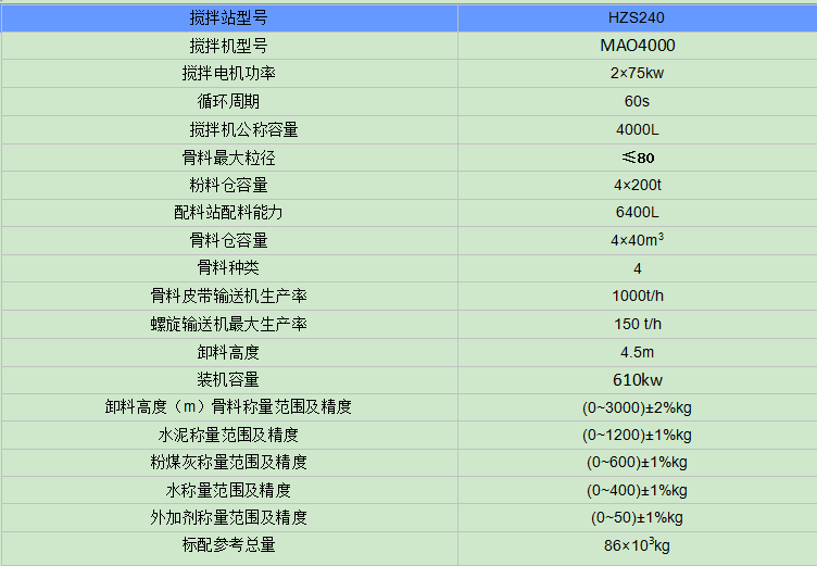 雙HZS240大型混凝土攪拌站技術參數(shù)