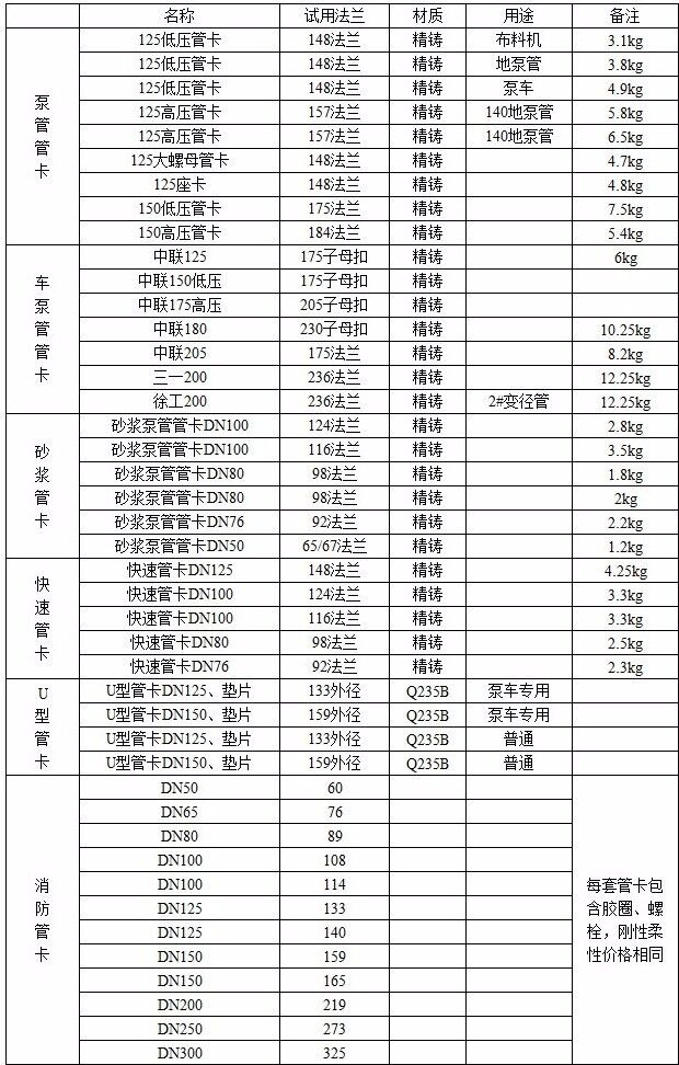 產品型號:125、150、180管卡