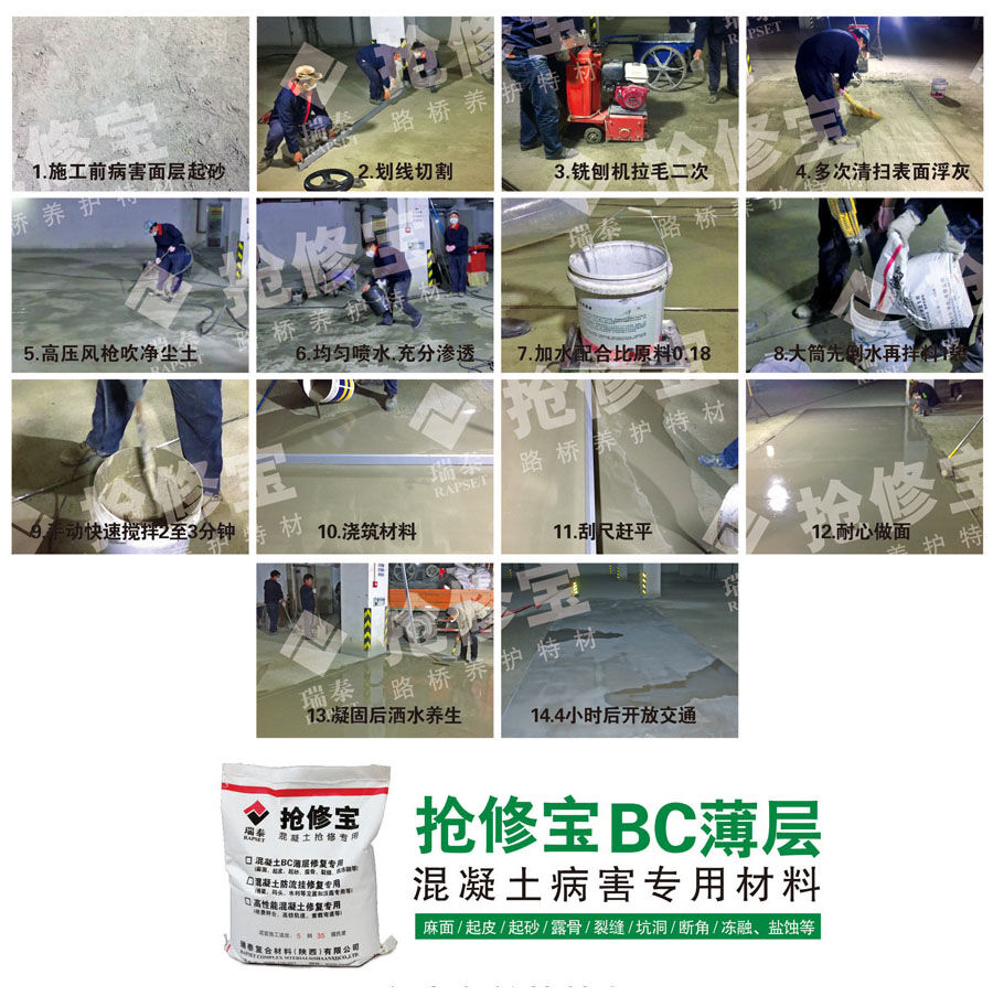 出現(xiàn)這些問題的主要原是因為施工質(zhì)量和產(chǎn)品本身的使用壽命問題,那么針對這種問題,地坪在修補(bǔ)處理基層時應(yīng)該選擇什么材料呢?首先應(yīng)考慮快速材料,因為是地下停車場,車輛需要頻繁進(jìn)入駛出;其次針對起塵、起砂、脫落的微表處病害,選擇針對微表處病害的修補(bǔ)材料。搶修寶BC薄層就是一個不錯的選擇,材料本身強(qiáng)度高,內(nèi)含進(jìn)口膠粉,可以和病害部位嚴(yán)絲合縫的結(jié)合起來,其次加入了進(jìn)口添加劑,材料可以30分鐘完成初凝,2-4小時就可以恢復(fù)交通,解決了車輛進(jìn)出頻繁引起的交通擁堵,是地坪修補(bǔ)基層處理的的不錯的選擇!