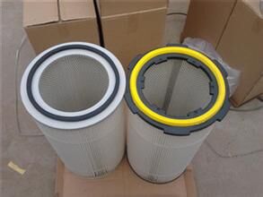 濾筒是用計(jì)算長(zhǎng)度的濾料折疊成褶,首尾粘合成筒,筒的內(nèi)部用金屬網(wǎng)架支撐,上、下用頂蓋和底座固定,濾料的長(zhǎng)度由粉塵的性質(zhì)和粉塵的濃度決定。
