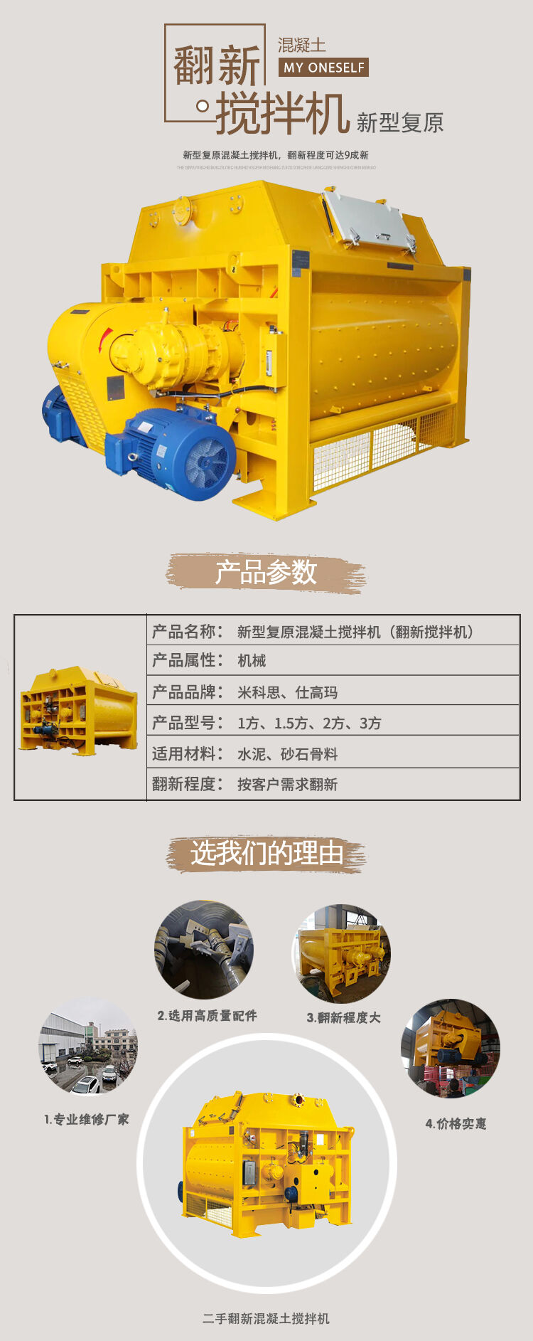 我公司回收仕高瑪、三一、中聯(lián)、南方路機(jī)、米科思各廠(chǎng)家的攪拌機(jī)。