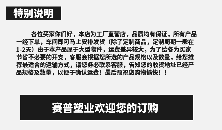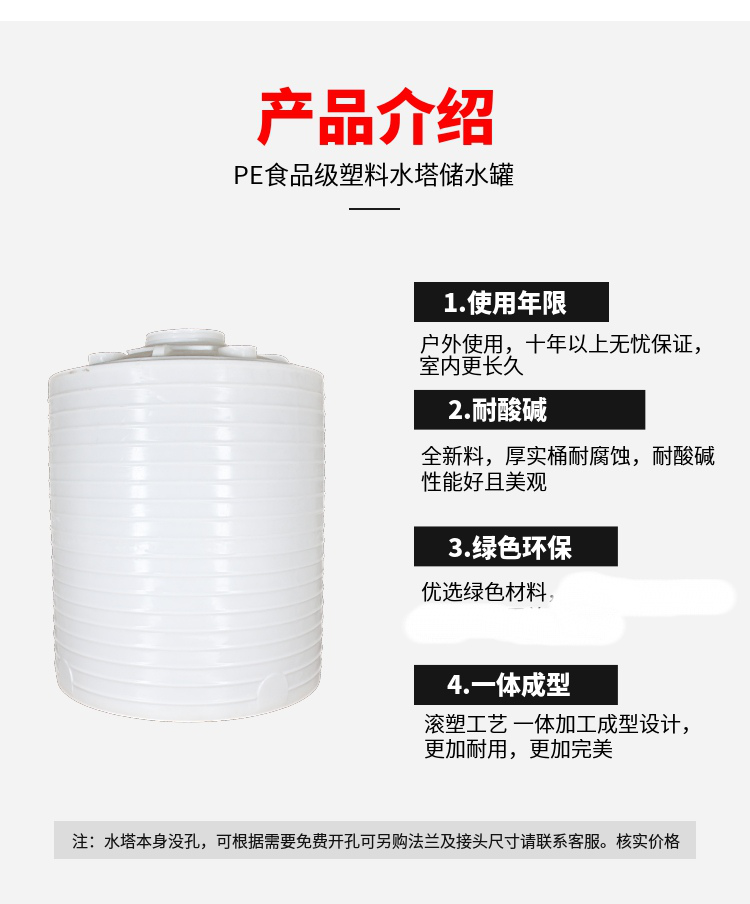 常壓產(chǎn)品,不可施于超過常壓(1個大氣壓力)以上之正壓或負壓;若需攪拌或酸堿濃度比重在1.2以上時,*好加裝補強套及加厚桶體壁厚為宜。此項特性尤其在盛裝容積超過10000L以上的桶體特需注意之。(硫酸、硝酸濃度超過28%一律使用特級產(chǎn)品并*好加裝補強套)