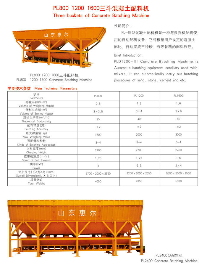 歸屬行業(yè):PL1600三斗混凝土配料機