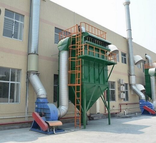 隨著過濾時(shí)間的延長、濾袋上的粉塵層不斷積厚,除塵設(shè)備的阻力不斷上升,當(dāng)設(shè)備阻力上升到設(shè)定值時(shí),清灰調(diào)協(xié)開始進(jìn)行清灰,首先,一分分室提升閥關(guān)閉,將過濾氣流截?cái)啵缓箅姶琶}動沖閥開啟,壓縮空氣以極短促的時(shí)間在上箱體內(nèi)迅速膨脹,涌入濾袋,使濾袋膨脹變形產(chǎn)生振動,并在逆向氣流沖刷的作用下,附著在濾袋外表面上的粉塵剝離落入灰斗中,清灰完畢后,電磁脈沖閥關(guān)閉,提升閥打開,該室又恢復(fù)過濾狀態(tài)。清灰各室依次進(jìn)行,從第一室清灰開始至下一次清灰開始為一個(gè)清灰周期。