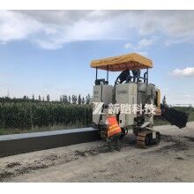 該設(shè)備采用三履帶行走驅(qū)動(dòng),水泥混凝土經(jīng)過輸料裝置,進(jìn)入成型模具,然后通過振動(dòng)棒振動(dòng)和模具擠壓,一次攤鋪成型用戶需要的水泥結(jié)構(gòu)物。通過更換模具及對車輛和模具狀態(tài)的精確調(diào)整和控制可以實(shí)現(xiàn)各類路緣石、硬路肩、防撞墻、公路中央分隔帶、水溝/匯水槽/排水槽、下水道及安全環(huán)島等不同輪廓水泥混凝土結(jié)構(gòu)物的精準(zhǔn)鋪筑。