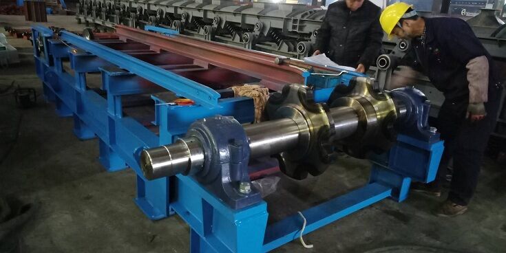 頭輪組裝有兩件主動鏈輪,與尾輪組相呼應,頭輪組做為主動輪組, 尾輪組為從動輪組。當傳動機構帶動頭輪轉動時,帶動輸送鏈條、刮板輸 送裝置運轉,完成輸送料過程。
