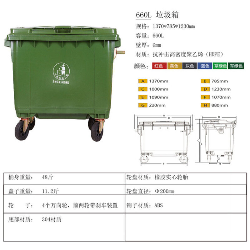 660升環(huán)衛(wèi)垃圾桶廠家,加厚新料戶外垃圾車價(jià)格,660升戶外垃圾桶批發(fā)