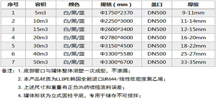 特點(diǎn):所用材質(zhì)為韓國進(jìn)口聚乙烯(PE)滾塑原料,儲罐一次成型,內(nèi)外光滑,具有良好的衛(wèi)生性與抗紫外線能力,耐酸堿、耐腐蝕、易清洗、不易老化。它可以盛裝在常溫下無機(jī)酸、堿、鹽等大部分物質(zhì)及有機(jī)物,耐熱耐凍 耐熱耐凍性佳,-5℃—+85℃均可使用