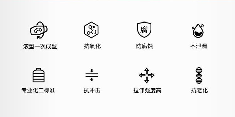 1)產(chǎn)品采用韓國(guó)進(jìn)口高質(zhì)量LLDPE作為產(chǎn)品生產(chǎn)原材料,生產(chǎn)出來(lái)的pe儲(chǔ)罐具有無(wú)毒、無(wú)味、耐酸、耐堿、耐沖擊、耐高溫、耐寒、不易老化等優(yōu)點(diǎn)。
