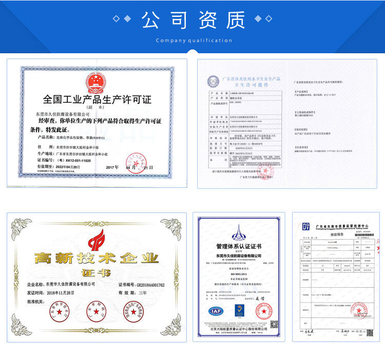 東莞市久佳防腐設備有限公司是國內(nèi)前沿的防腐環(huán)保設備制造商之一,竭誠以專業(yè)的防腐技術為各類石化、環(huán)保、釀造、醫(yī)藥、食品等行業(yè)提供防腐儲存運輸設備。公司擁有各類先進的生產(chǎn)設備與檢測儀器。加工工藝成熟,檢測手段先進,經(jīng)過多年不斷創(chuàng)新努力,集生產(chǎn)、銷售各類鋼襯塑儲罐、鋼襯塑反應釜、防腐儲罐、全塑儲罐、PE儲罐、離子交換柱等系列設備于一體。設備品質(zhì)得到廣大合作企業(yè)高度好評.設備技術合作開發(fā)愈加密切。