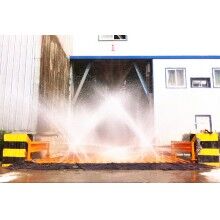 另外,中銳環(huán)保工程洗輪機還設(shè)置了分段沖洗的功能。一般情況下洗車機沖洗時整臺洗車機都是同時噴水,由于洗車機超長,在洗車的過程中車輛需緩慢行進洗車機前部分噴的水噴不到車上,造成浪費。為此采取分段噴水控制,節(jié)約了水資源,降低了使用成本。