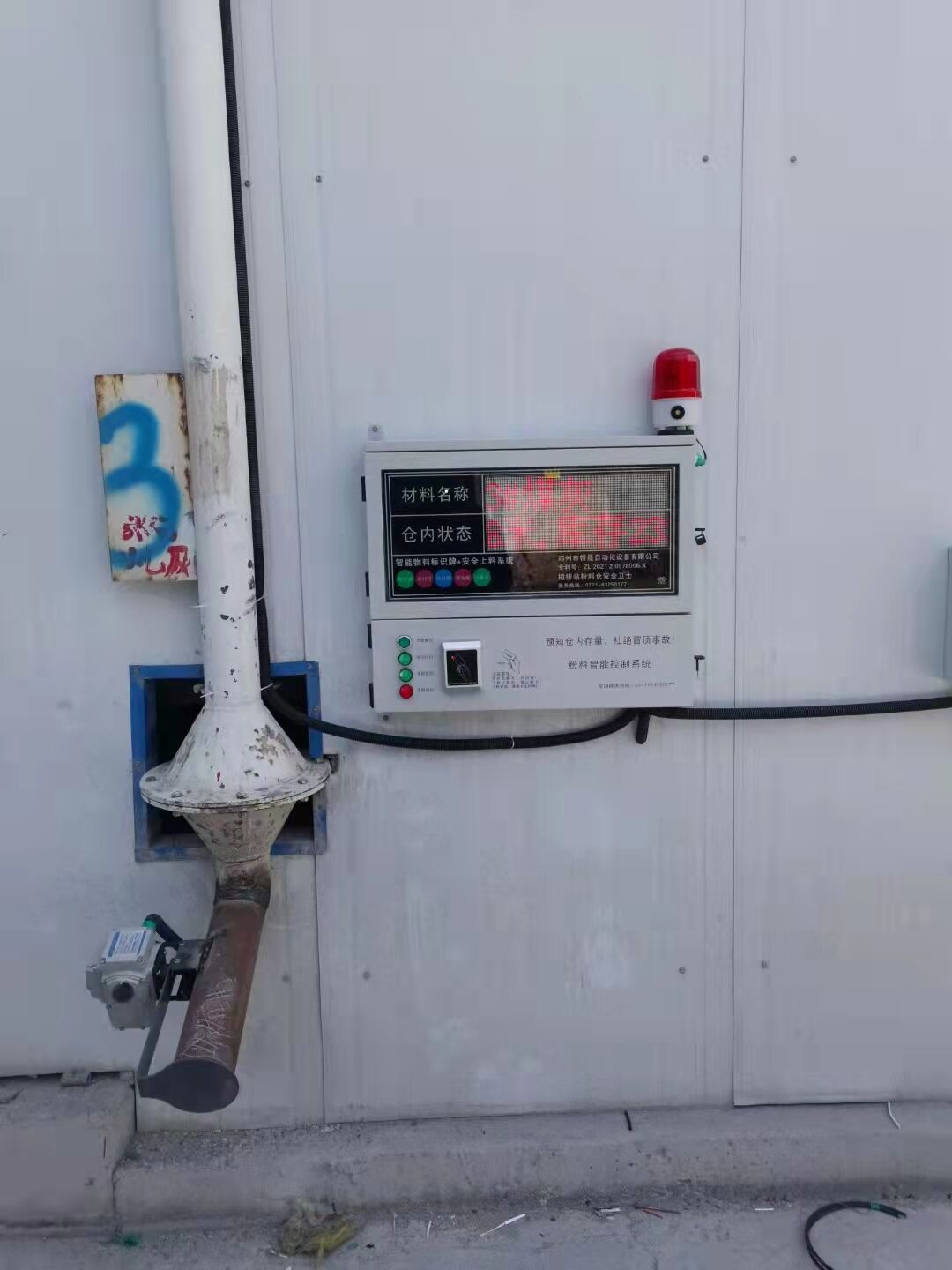 地面顯示終端:每料倉(cāng)配備一臺(tái),用于料位觸發(fā)阻旋開(kāi)關(guān)的聲光報(bào)警和實(shí)時(shí)顯示料倉(cāng)重量及百分比,便于及時(shí)提醒操作人員采取措施,避免事故發(fā)生。