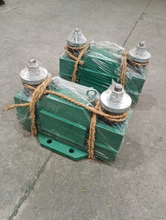 ⑼ 斜溜槽(見圖12):對于厚度小于3-3.5毫米的料槽,若在中心線靠下一點(diǎn)的部位安裝,便會在料槽下端產(chǎn)生強(qiáng)烈的振動。用于圓筒形料槽時(shí),可先把振動器裝在平板上,然后用U型螺栓固定在管子上。安裝單臺振動器時(shí),一般應(yīng)裝在溜槽下端40%的位置上。安裝多臺時(shí),應(yīng)***同步運(yùn)行,*下部的一臺應(yīng)裝在距離溜槽端部45-60厘米處。