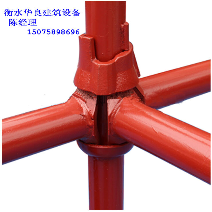 碗扣腳手架獨特的結(jié)點設(shè)計,雖仍應(yīng)歸為鉸接,但卻能夠承受相對更大的荷載,再加上其立桿上的上碗和橫桿上的插片均為鍛鋼的工藝,使這款碗扣腳手架系統(tǒng),在國外被廣泛地應(yīng)用于化工廠、煉油廠、油田以及大型船艦維修等荷載相對較高的領(lǐng)域??紤]到系統(tǒng)的穩(wěn)定性,安裝斜桿是必須的。為了補足這個弱項,該系統(tǒng)特意設(shè)計了另外一類斜桿,在斜桿的兩頭,均用高強度螺栓,各固定半個旋轉(zhuǎn)扣件,扣件亦采用鍛鋼工藝。這樣,盡管斜桿無法直接在碗扣的結(jié)點扣接,但可以用扣件扣接在橫桿或立桿的適當(dāng)位置上,也大大地改善了系統(tǒng)的穩(wěn)定性。