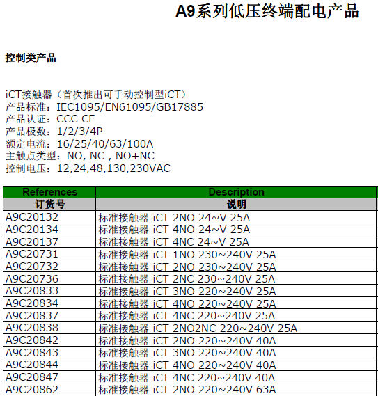 歸屬行業(yè):標準接觸器iCT 4NC 240V 25A