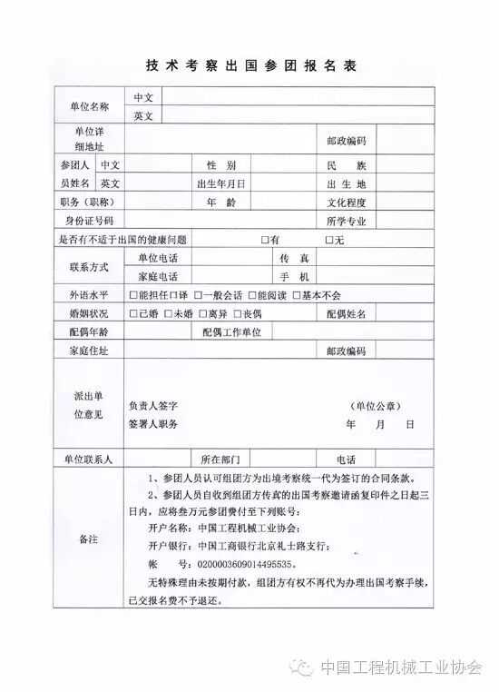 考察團初步預計境外活動時間14天,參團費3萬元人民幣/人,其中含往返機票、境外食宿費、境外交通費、雜費等,不包括在國內發(fā)生的費用。歡迎工程機械相關單位人員報名參加,報名費2000元,用于辦理出國手續(xù)。