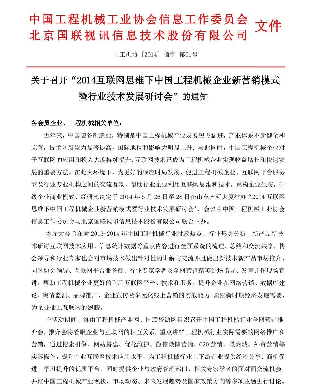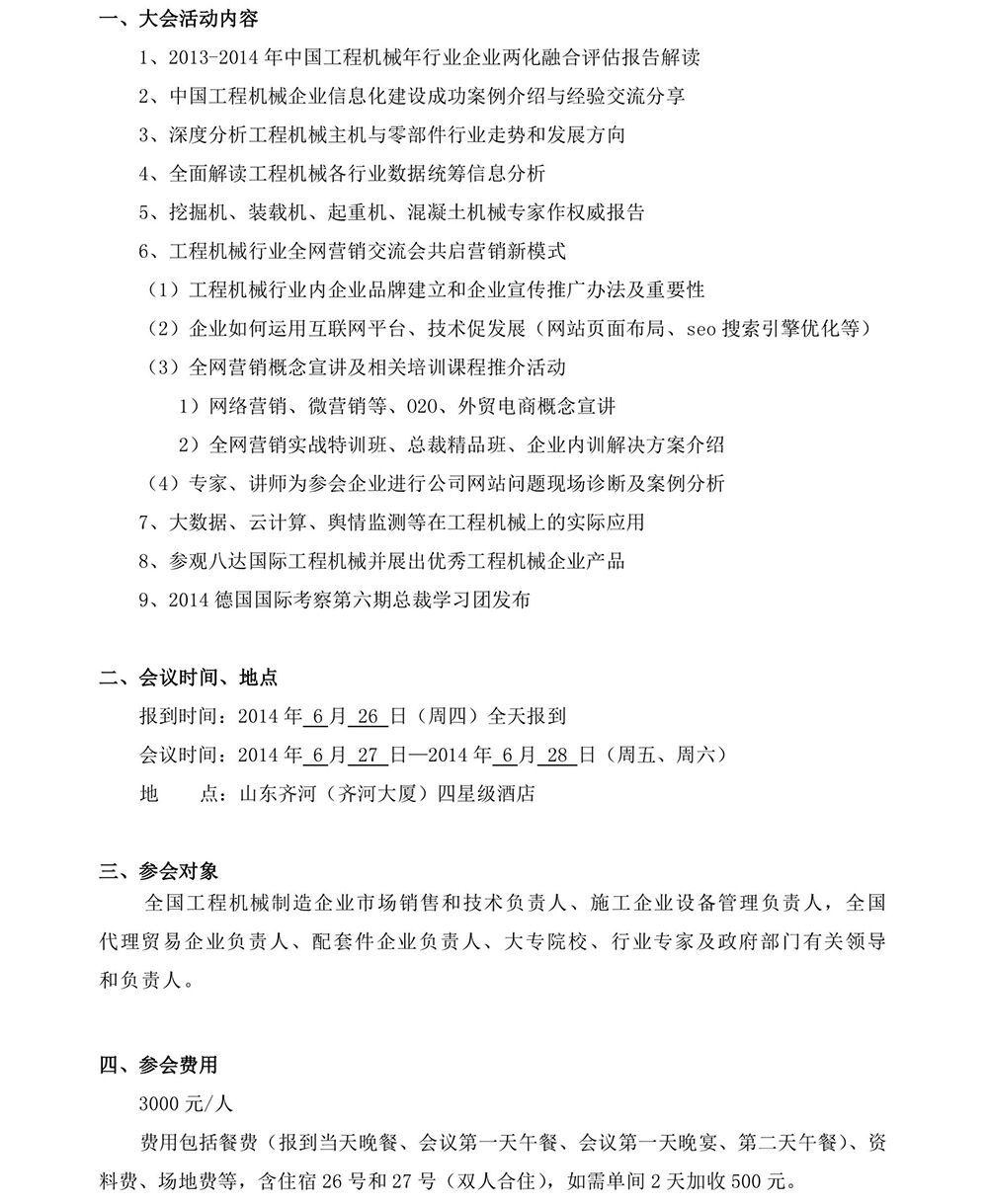 關(guān)于召開“2014互聯(lián)網(wǎng)思維下中國工程機(jī)械企業(yè)新營銷模式暨行業(yè)技術(shù)發(fā)展研討會”的通知